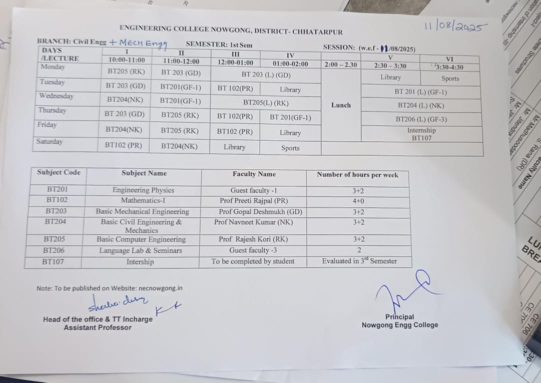 1st Sem time table Mechanical and Civil
