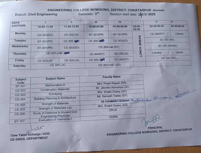 3rd Sem Civil Time Table