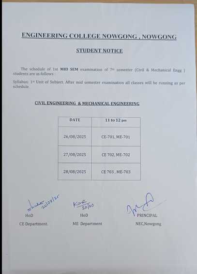 08/2025, 7th Sem 1st Mid Sem for Civil & Mechanical